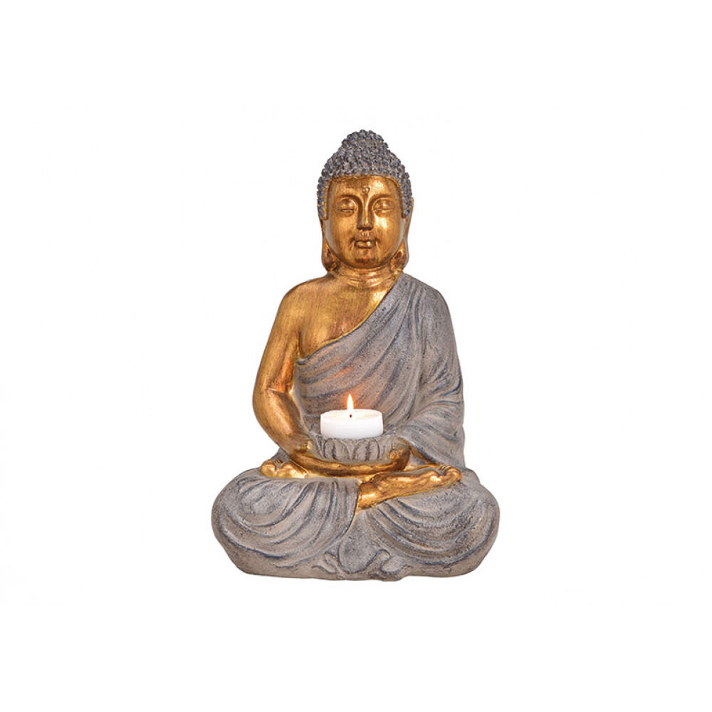 Statueta Buddha H41cm brown & gold cu suport lumanare - DreamStock
